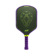 The Invader is a Hybrid paddle with a layer of Fiber Glass creating a poppy little rocket ship with fantastic ball feel. The face is made of Electroplated Polyethylene terephthalate substrate with an aluminum deposition interwoven with continuous filaments of carbon atoms arranged into 700 tow increments (T-700 CF x Electroplated Polyester Weave) We're here to conquer your courts. #convertthemall
